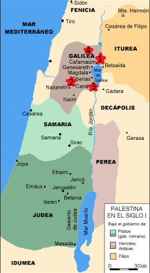 En canva o genially cree una presentación del mapa de Israel en los tiempos de Jesús y señales los lugares más importantes donde el realizó su vida pública (milagros).