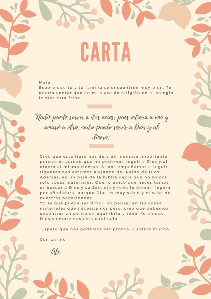 Escriba una carta a un compañero o compañera donde le exprese porqué se debe servir solo a un señor y no a dos. Y que exigencia tiene para su vida este texto.